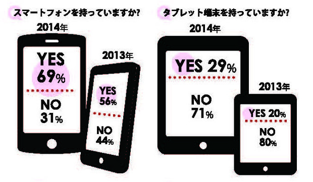 ・ランナーのスマートフォン保持率:2013年56%→2014年69%