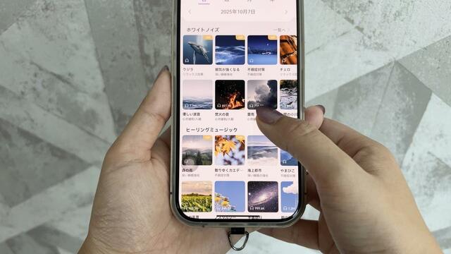 さらに、ストレスや睡眠の改善に効果が期待できるさまざまなホワイトノイズやヒーリングミュージックを聴くこともできます。