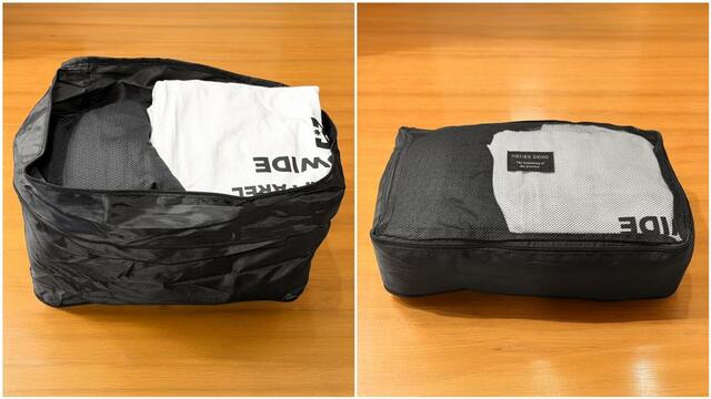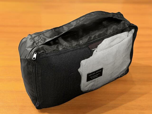 かさばる衣類のサイズを手軽に圧縮できる旅行グッズです。