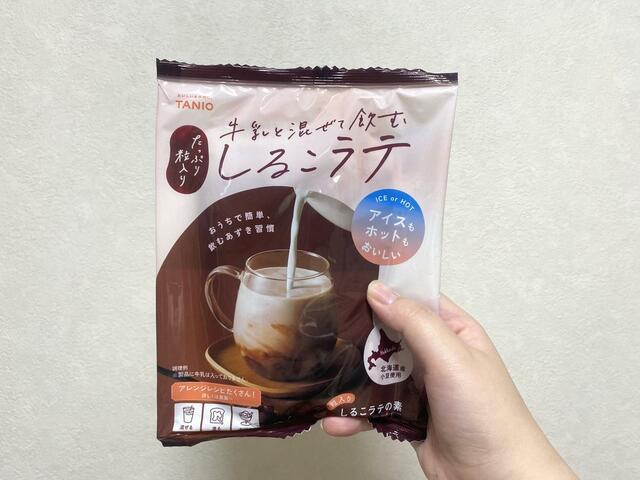 「しるこラテ」は、牛乳と混ぜるだけで和風のラテが手軽にたのしめるアイテム。