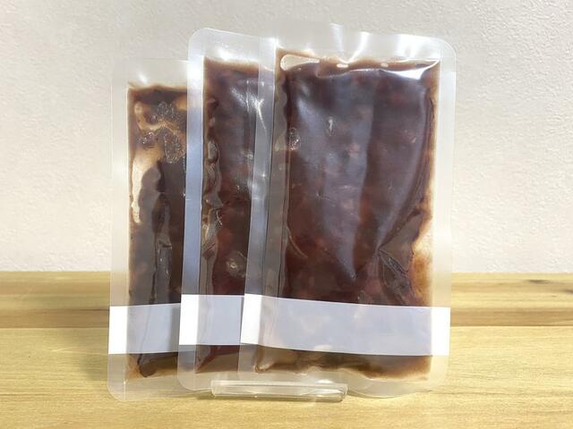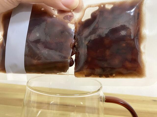 パウチの上部だけでなく、中央にも切れ目が入っているので、小豆をスムーズに出せて便利だな〜。