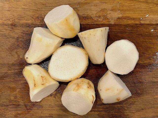 今回は里芋でつくりましたが、れんこんやさつまいもなどの根菜でも美味しくいただけます。