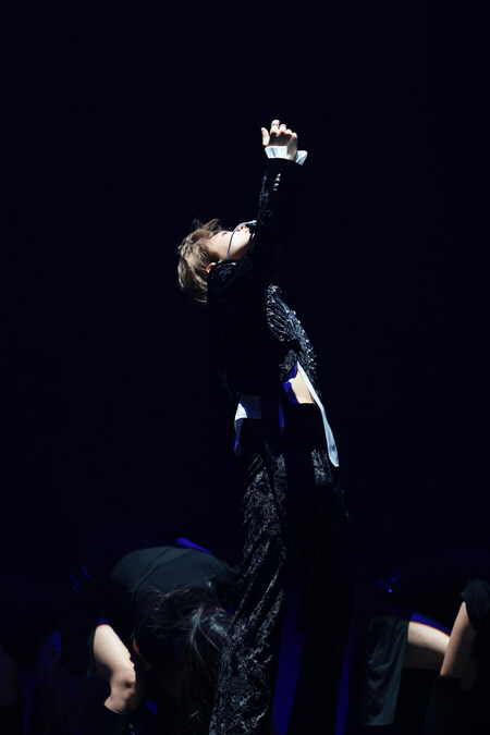 そこから約30分以上、テミンは歌以外の言葉を発することなく、 “偽善と禁忌”を己の肉体から生み出される歌とダンスで表現していく。生バンドの演奏により、楽曲はテーマに合わせて恐怖心を引き出すように重低音のリズムを際立たせていたり、不穏な音が入っていたり、その一方で、ピアノや鐘のような音色で一筋の希望のような光を感じさせたり、新曲かのように印象を変えているものもあった。