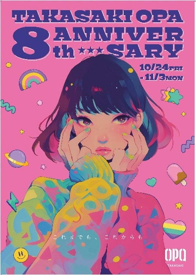 この度、これまで当施設を支えてくださった皆さまへの感謝を込めて、10月24日(金)から11月3日(月・祝日)まで、アニバーサリー企画「TAKASAKI OPA 8th ANNIVERSARY」を開催いたします。