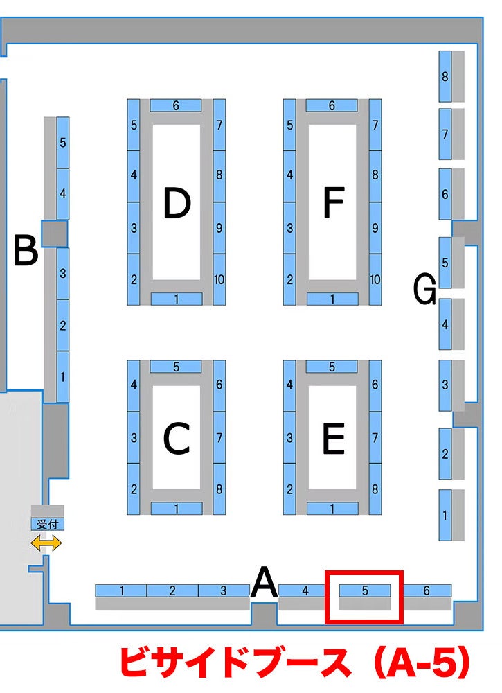 ビサイドブースは、神戸電子専門学校 学生会館4FのA-5になります。上図のマップよりブースの位置をご確認ください。