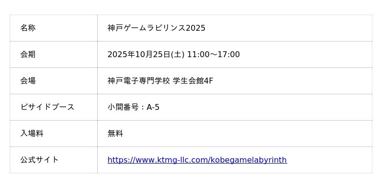 ◆神戸ゲームラビリンス2025 出展情報
