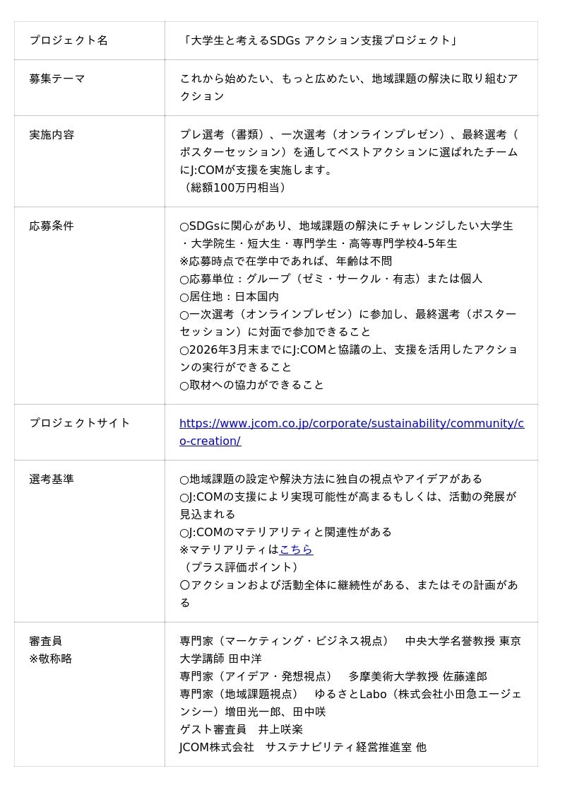 J:COMはこのプロジェクトを通して未来を担う若い世代とともに、SDGsの実現に向けたさらなるアクションを共創し、地域課題の解決と地域社会の活性化に貢献してまいります。