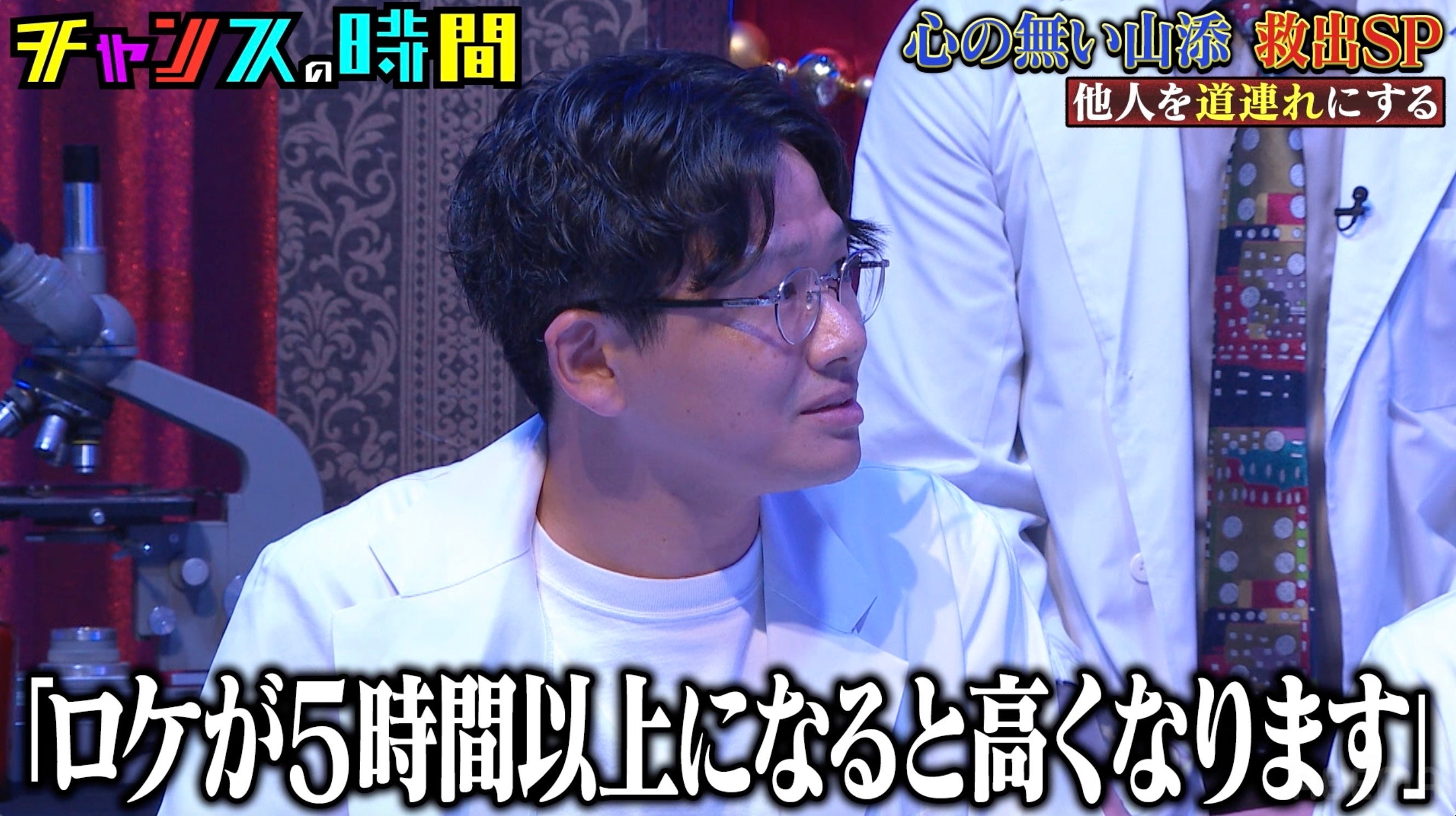 10月19日(日)放送の#333では、多額の借金を重ね、“心が無くなる病”=「心無病」にかかってしまったお笑いコンビ・相席スタートの山添寛を救うべく、緊急企画「今山添が危ない!心を取り戻せ!『心無病』山添救出スペシャル!」を実施しました。スタジオには、山添を知り尽くす相席スタート・山崎ケイ、さらば青春の光・森田哲矢、ダイタク、ミキ・亜生が集結。芸人たちの証言から山添の本性が次々とあぶり出される展開となりました。