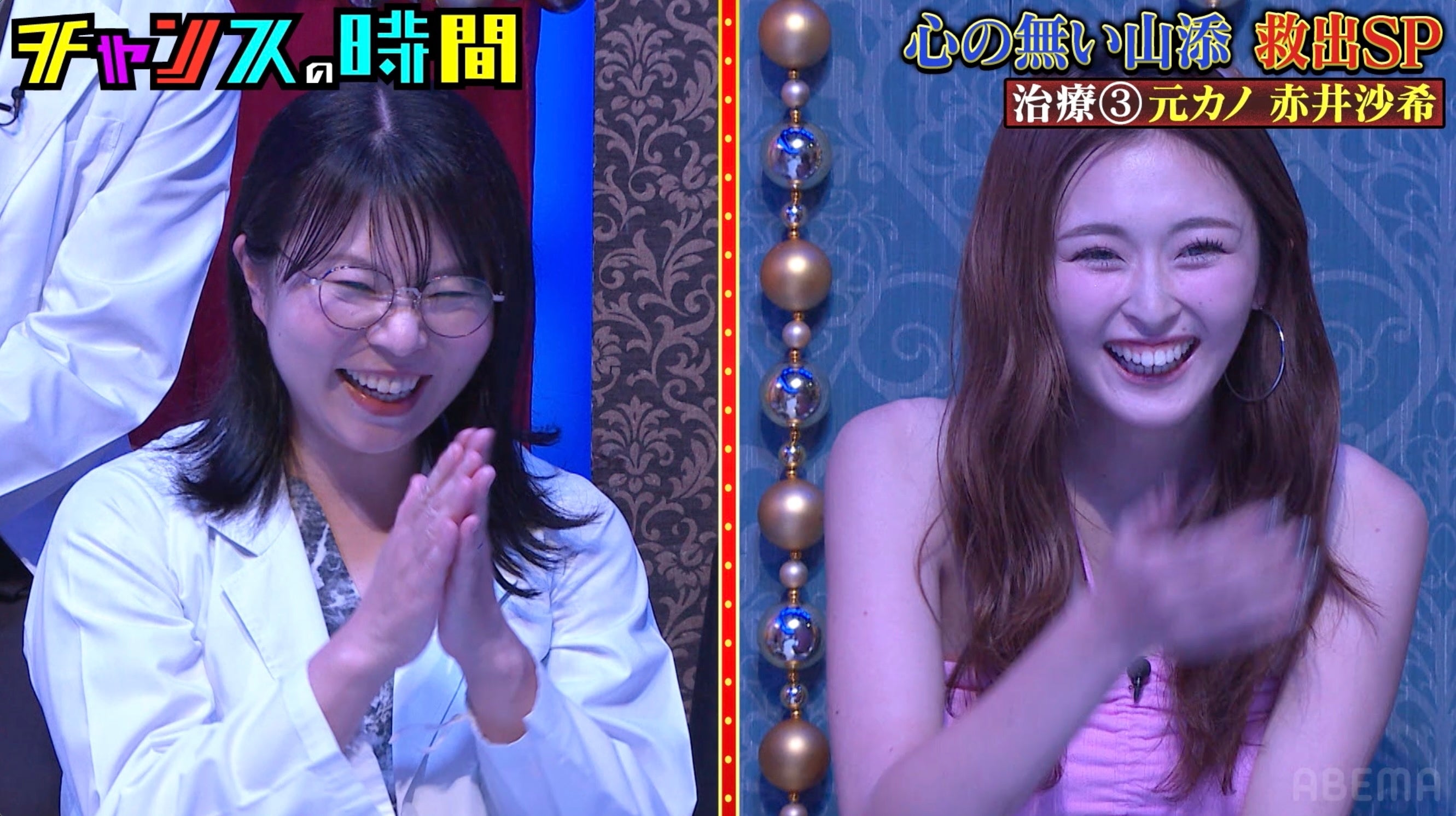 そして、山添の感情を取り戻すための治療として、ラグビー芸人・しんや、お笑いコンビ・そいそ~すがネタを披露し、高校時代の元カノで元プロレスラーの赤井沙希も登場。「律儀でハートフルな人やん」「どうしたん?」と心配した赤井は、「高校時代に行ったデートで街中の人にアテレコとかして私を楽しませてくれた」「海遊館でお魚にもアテレコして…」と思い出話を披露します。ゆうちゃみも思わず「愛おしい」とコメントする山添が純粋だった頃のエピソードが明かされ、山添の表情にも変化が現れましたが…。「アドレナリンが足りひんくなったらいつでも言ってね。私元レスラーやから」と告げた赤井が、まさかの荒療治を決行。森田も「こんな焦ってる山添初めて」と驚く展開が山添を待ち受けていて…。芸人一同が「赤井ちゃんありがとう!」と歓喜の声を上げた衝撃の結末とは!?