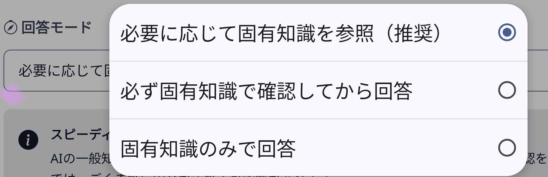 ■ 新機能3:回答モードの選択 - 知識の参照ロジックを自在にコントロール