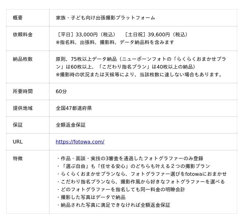 ■ 家族・子ども向け出張撮影プラットフォーム「fotowa」について