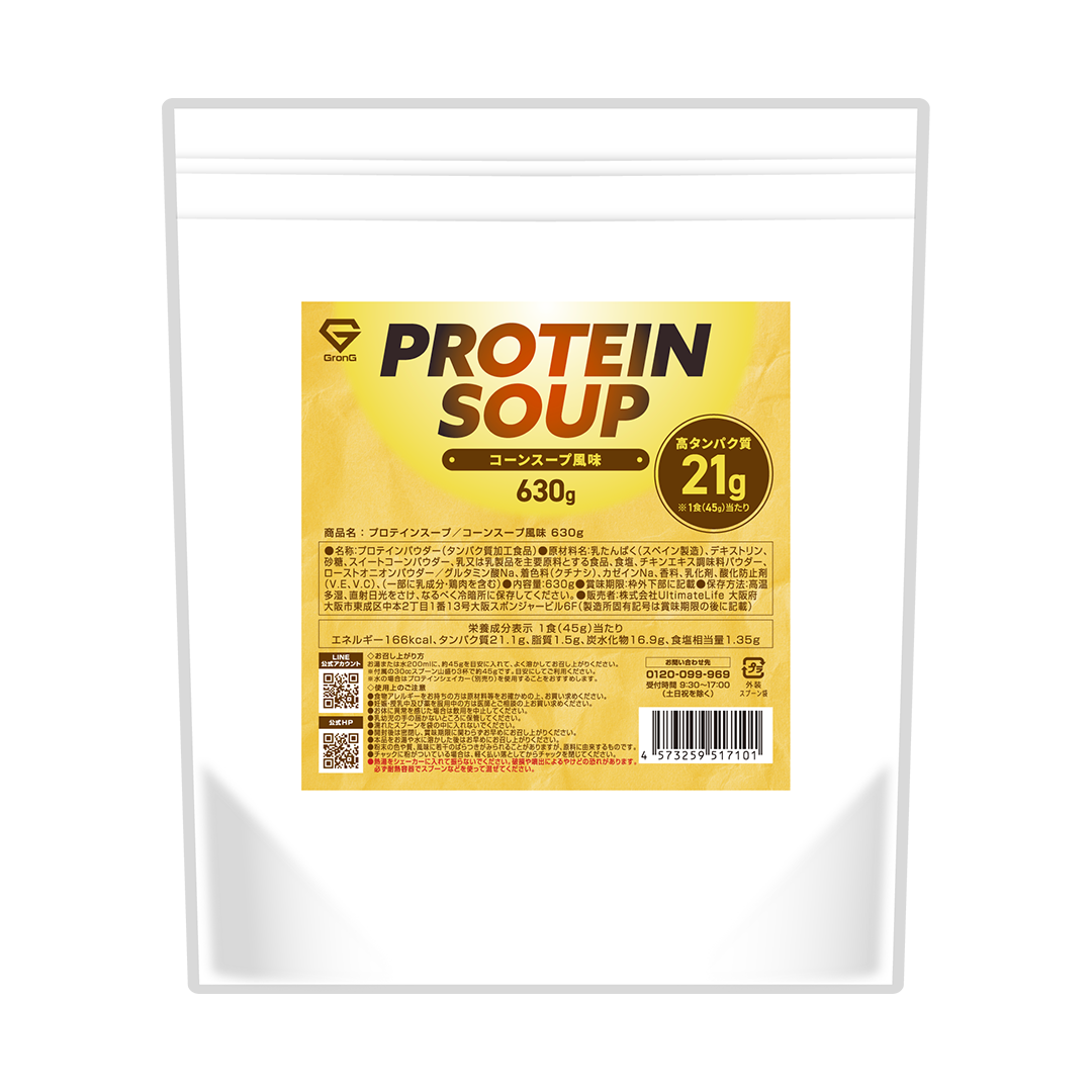 サプリメントやトレーニング器具の販売などをおこなう株式会社Ultimate Life(本社:大阪市東成区、代表取締役社長:田中 悠貴)は、2025年10月25日(土)に、ホットで手軽にタンパク質をとれる「プロテインスープ コーンスープ風味」をGronG(グロング)ブランドより、Amazonなどの各通販サイトで発売します。