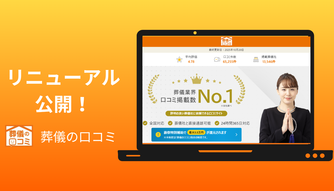 株式会社ディライト(本社:東京都新宿区、代表取締役:高橋亮)は、葬儀社選びの口コミサイト「葬儀の口コミ」をリニューアルいたしました。
