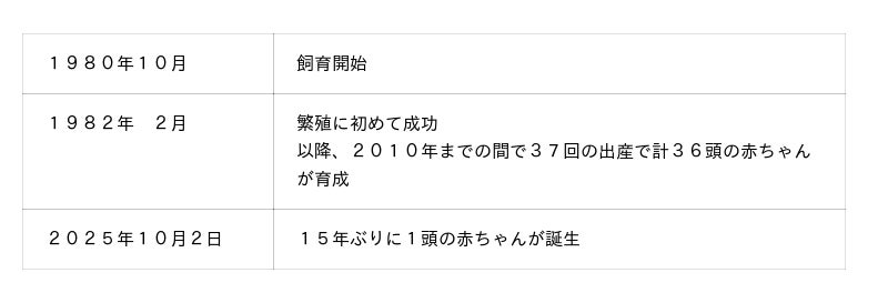 - 親情報父親:2023年 7月 8日長野市茶臼山動物園生まれ(2歳) 2024年10月 9日搬入母親 :2019年 8月23日姫路セントラルパーク生まれ(6歳) 2024年10月22日搬入
