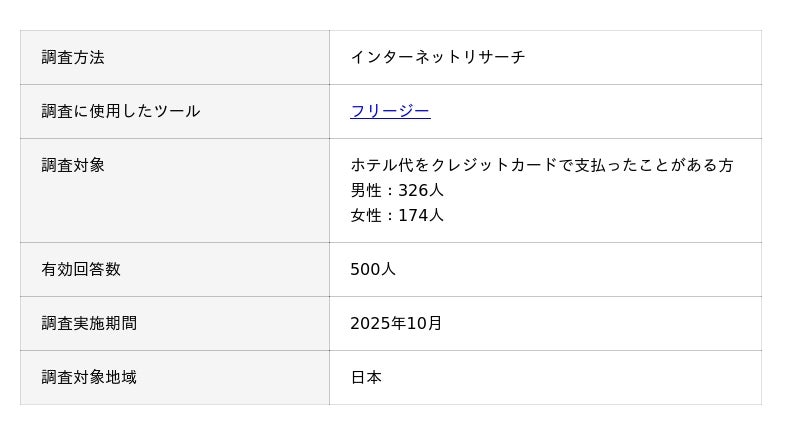ココモーラでは、ユーザーの生の声を調査するため「ホテル代のクレジットカード払いに関するアンケート調査」を行いました。アンケート調査の概要は以下の通りです。
