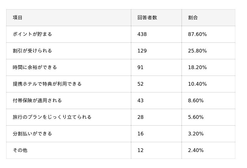 - ホテル代をクレジットカードで支払う際に感じたメリットの第1位は「ポイントが貯まる」、第2位は「割引が受けられる」。反対にデメリットの第1位は「現金払いしかできない場合がある」、第2位は「急なスケジュール変更に対応できない」。