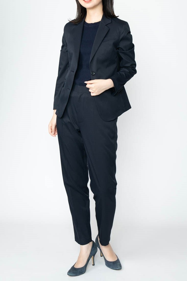 特徴:生地はストレッチ性、速乾・撥水、水洗い可、イージーケアなどの高機能性を備える自社オリジナル素材「ultimex」を使用。身体から発生する遠赤外線を吸収して蓄熱する特殊素材を裏地に使用し、保温性を高めました。袖口や裾などに放電テープを縫い込み、冬場の静電気を軽減。メンズのジャケットには、胸ポケットに出し入れ可能なフェイクチーフを搭載。メンズ・レディースともに、左内ポケットにはファスナーがついており、スマホや名刺入れなどが収納可能。メンズのパンツのウエストは背面ゴムに、レディースのパンツのウエスト両サイドにゴムを内蔵することで、締め付け感なく長時間着用可能。