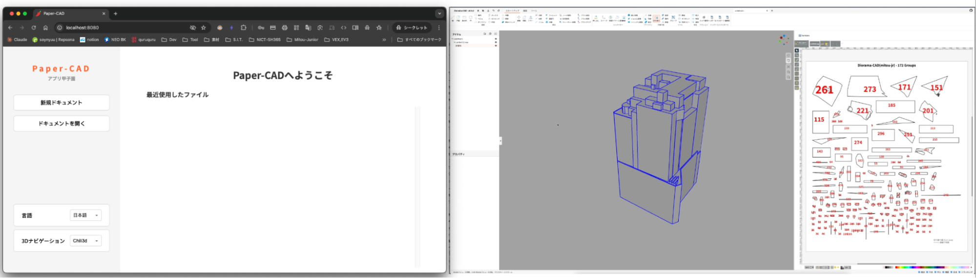紙の建物模型制作を直感的かつ効率的に自動化するWeb CADアプリです。3Dで設計した建物を自動で2D展開図に変換し、従来、熟練技術が必要だった展開図設計を誰でも簡単に行えます。初心者から経験者まで、誰もが挫折することなく、模型制作を「苦しい試練」から「ワクワクする創造」へと変えられます。