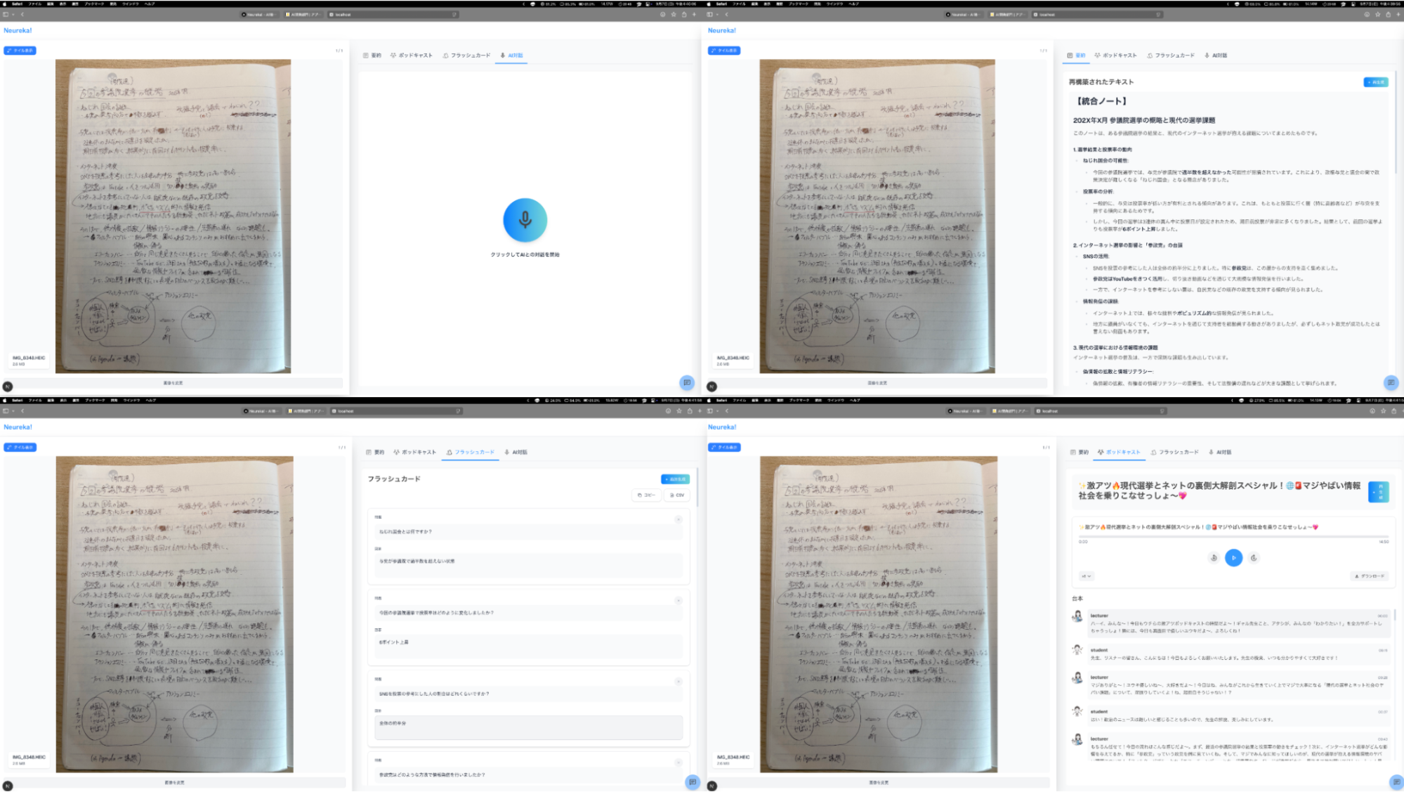 教科書やノートの写真をアップロードするだけで、AIがポッドキャストやフラッシュカードを自動生成し、学習の基本となる「理解」を効率化するアプリです。ギャル先生と真面目な生徒の対話形式のポッドキャストで、難しい内容も耳から簡単に理解できます。
