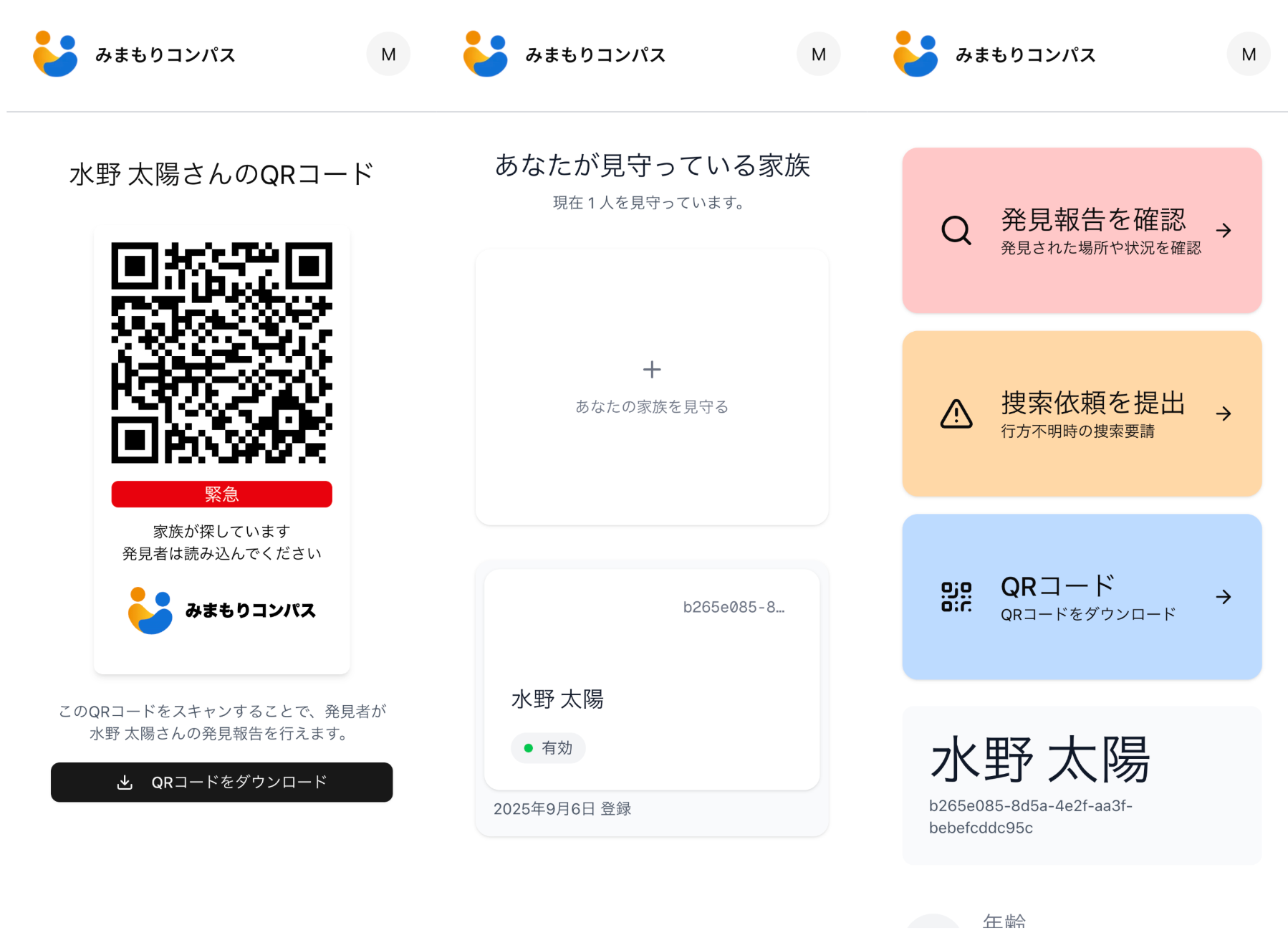 QRコードを利用した認知症高齢者見守りシステムです。高齢者の持ち物につけたQRコードを、発見者がスマホで読み取るだけで、ご家族へ匿名で居場所を通知できます。これにより、身元確認にかかる時間や、個人情報に関する心理的な壁を取り除き、早期発見と安全確保をサポートします。介護するご家族だけでなく、地域全体で高齢者を見守る安心を提供します。