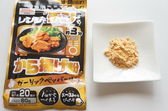 見つけたのは、昭和産業の「レンジでチンするから揚げ粉」。封を開けてみるとふわっとニンニクのいい香りがします。