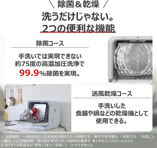 ※.試験機関:一般財団法人日本食品分析センター/試験方法:寒天平板培養法 / 除菌方法:「除菌」コース運転による/試験結果:菌の減少率99.9% 試験報告書番号 第19082272001-0101号