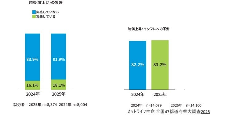 メットライフ生命は、明るく豊かな人生のあり方や必要な行動を考える礎として、お金や健康、社会に関する意識や、消費行動や生活の傾向等を明らかにする定点調査を、2018年から行ってきました。8回目となる「全国47都道府県大調査2025 ~社会情勢の変化と将来への備え~ 」では、世界的に不確実性が高い中、相場の急変や物価上昇、NISAをはじめとした投資・資産形成への関心、AIの利用などにも着目して結果をまとめました。