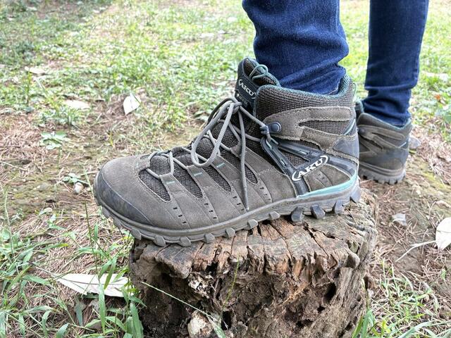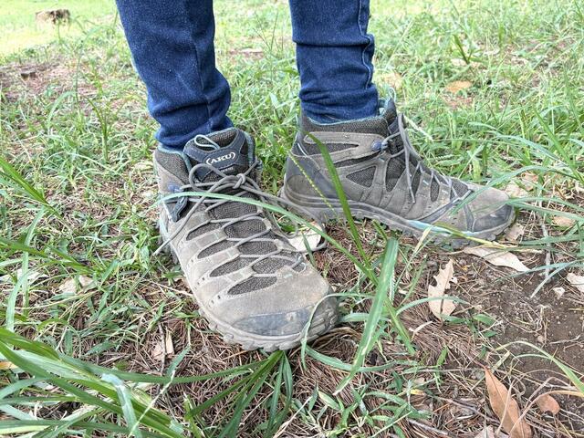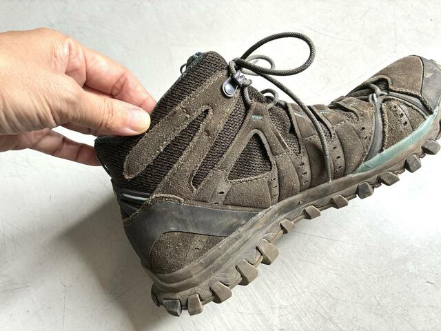 低山や夏場は少し暑いかもと思う、ハイカットのシューズ。