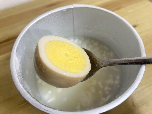 黄身のコクと「めし粥」のやさしいとろみが合わさって、ほっとする味わいに。