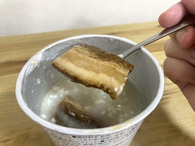 角煮の甘辛ダレが「めし粥」とよくなじんで、しっかり満足感のある一杯になりました。