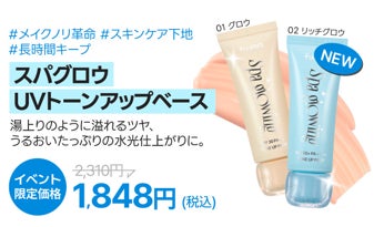 1階では、新商品の“湯上がりのようなツヤ肌”を叶える下地「スパグロウ」の世界観を体感できるエリアを、2階では、ブランドのベストセラー商品を自由にタッチアップできる空間をご用意しています。