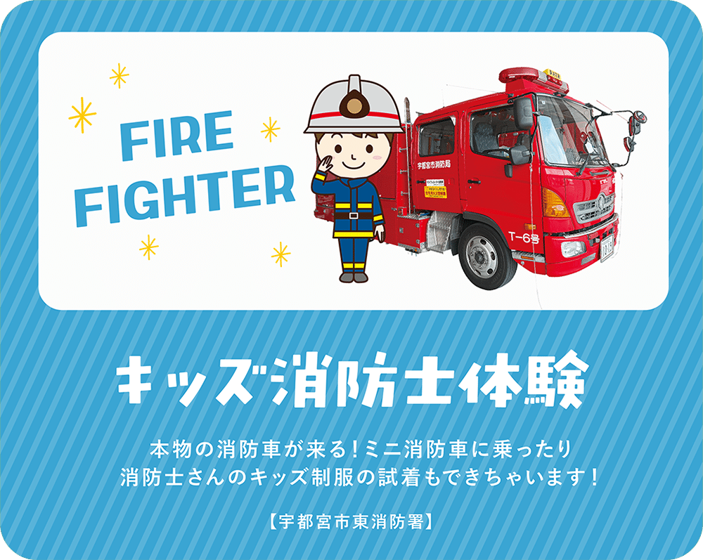 会場には、こども縁日やキッズ消防士体験などファミリーで楽しめるブースやイベントが盛りだくさん!一日楽しめるイベントです。