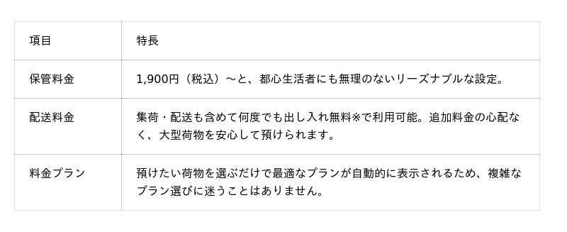 【経済的メリット】配送料金「何度でも出し入れ無料」※とシンプルな料金体系