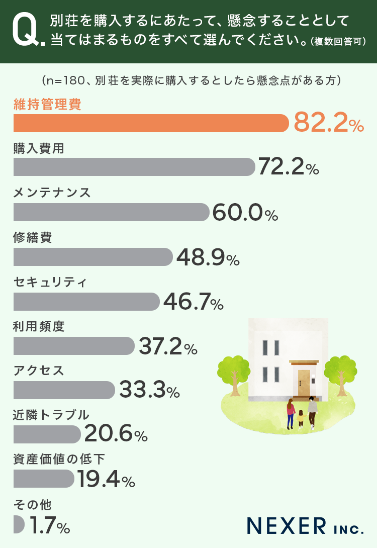 別荘は「リフレッシュ」や「趣味の拠点」として強く求められる一方、82.2%が懸念「あり」と回答。