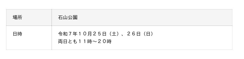 岡山城にほど近い優れたロケーションを有する石山公園で、「桃のチャツネ」を隠し味に使用した、岡山のご当地カレーである「岡山カレー」が大集合するイベント「岡山カレーフェスティバル2025」を開催します。岡山県産フルーツを使ったスイーツのお店も登場。2日間で約30店舗が集結します。各店舗こだわりの岡山カレーをぜひご堪能ください!