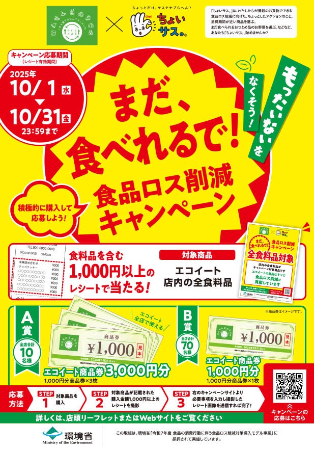 このたび、全国に食品ロス削減ショップを展開する ecoeat(エコイート)様(本部:大阪府摂津市)と共同で、食品ロス削減をテーマとしたキャンペーンを2025年10月1日から展開しています。