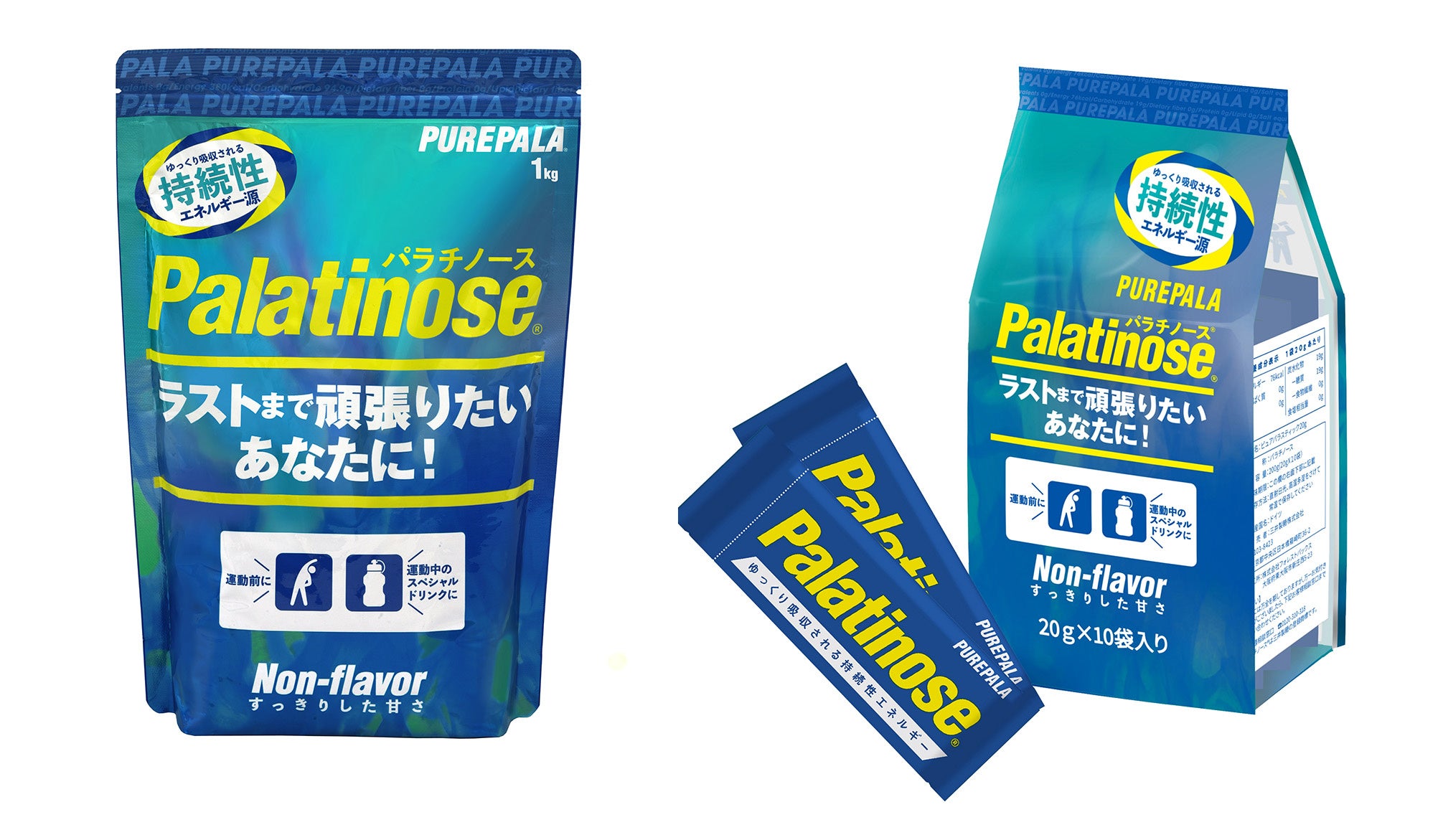 糖のトップメーカー・DM三井製糖が 40 年にわたり研究・開発する「パラチノース(R)」は、世界に先駆けて 1985 年に日本で最初に食品用途で発売された、小腸全体を使ってゆっくり吸収される性質をもつ植物(てん菜)由来の天然糖質。砂糖と同じくブドウ糖と果糖がつながった二糖類でエネルギー量も同じ(1gあたり4kcal)ですが、吸収スピードが砂糖の約5分の1という特性をもっています。その特性から、「パラチノース(R)」は持久系スポーツに適したエネルギー源といわれ、科学的な知見からアスリートのパフォーマンスアップに貢献。マラソンやトレイルランナーといった持久系スポーツ選手や、トレーニーに愛飲いただいています。