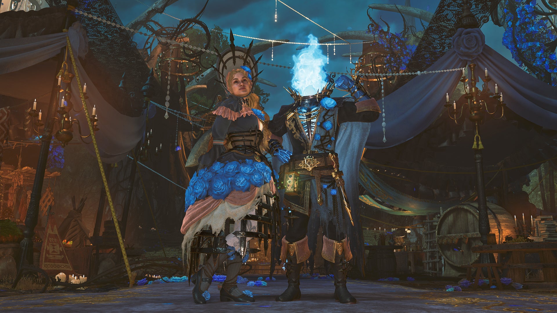 アルマ着せ替え衣装「不思議な秋夜のウィッチ」、エリック着せ替え衣装「風変わりな秋月のセリアン」といった季節イベントを彩る編纂者の衣装に加え、特別なチャームやジェスチャー、スタンプセット、セクレトの装飾が含まれたお得な有料ダウンロードコンテンツ「夢灯の儀 DLCパック」が10月22日(水)に登場します。