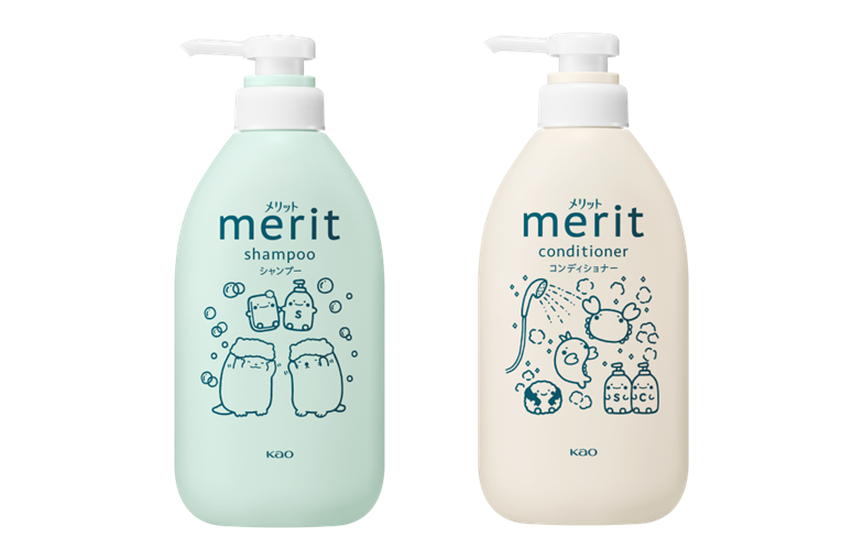 男女浴室内に、花王株式会社のへアケアブランド「merit(メリット)」の、「なんでもいきもの」デザインボトル『メリット シャンプー&コンディショナー【医薬部外品】』と『メリットキッズ リンスがいらない泡シャンプー』を設置します。また、ボトルのデザインに合わせて、設置場所の装飾も行います。