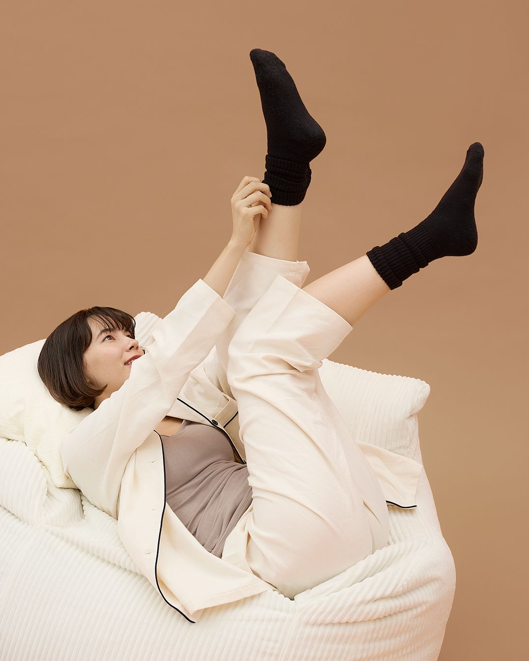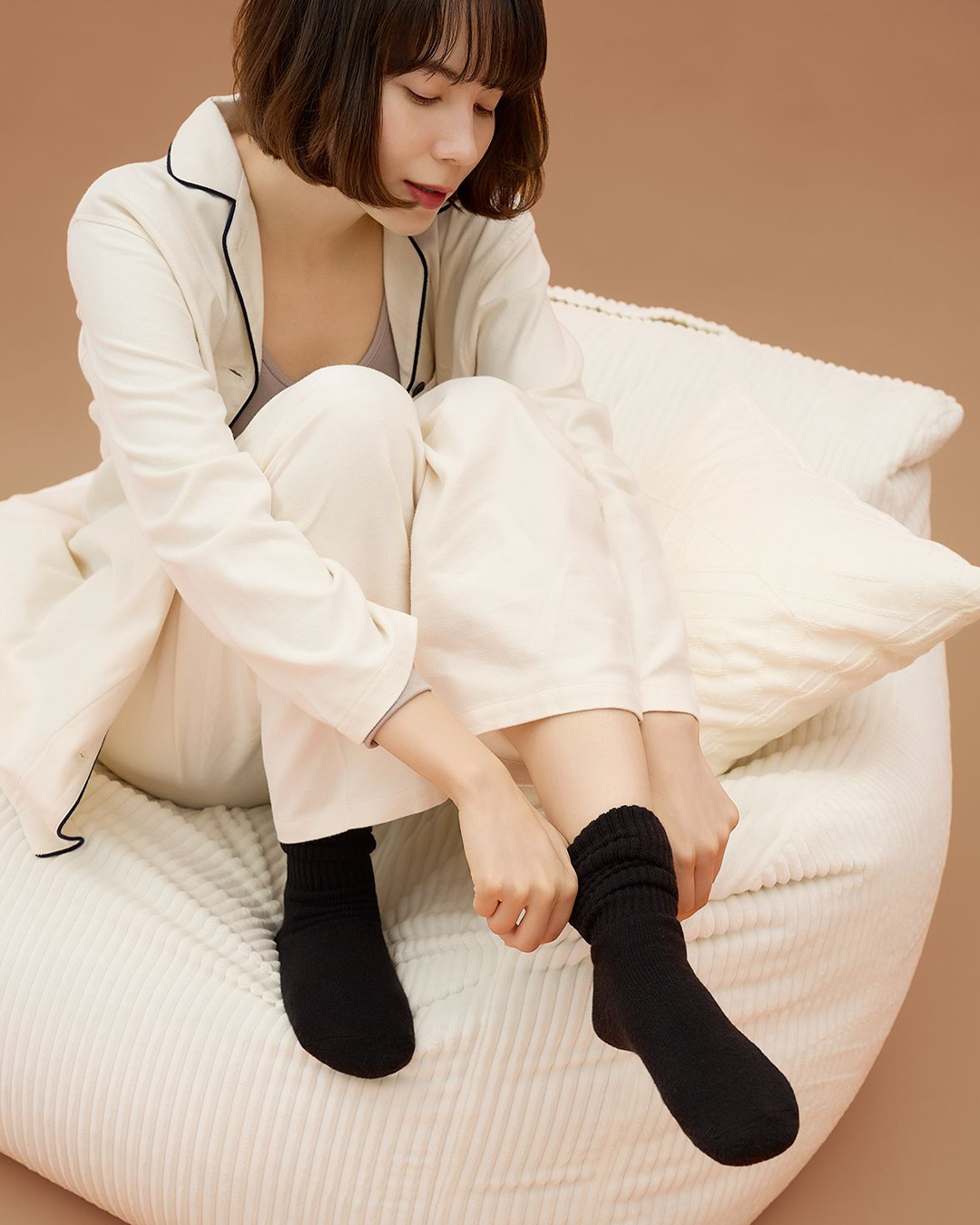 体温をしっかり閉じ込め、冷え戻りを防ぎます。長時間履いても快適なふんわりクッション性も◎。
