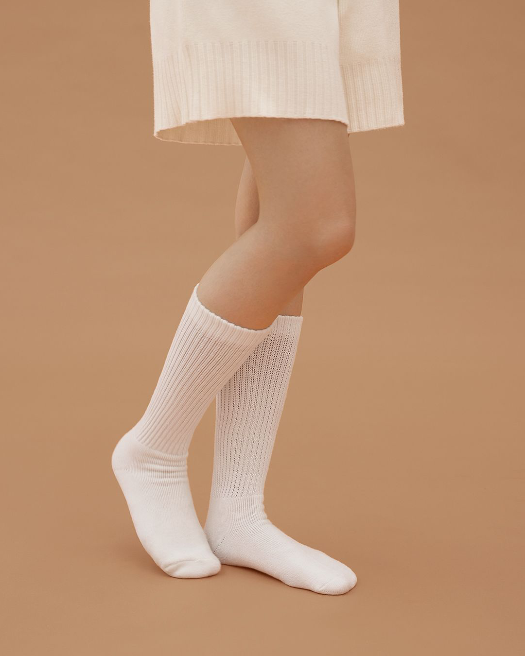 丈は約30cm丈で、くしゅっと履いても伸ばしても可愛いバランス。フィット感があり、ずり落ちにくい仕様です。