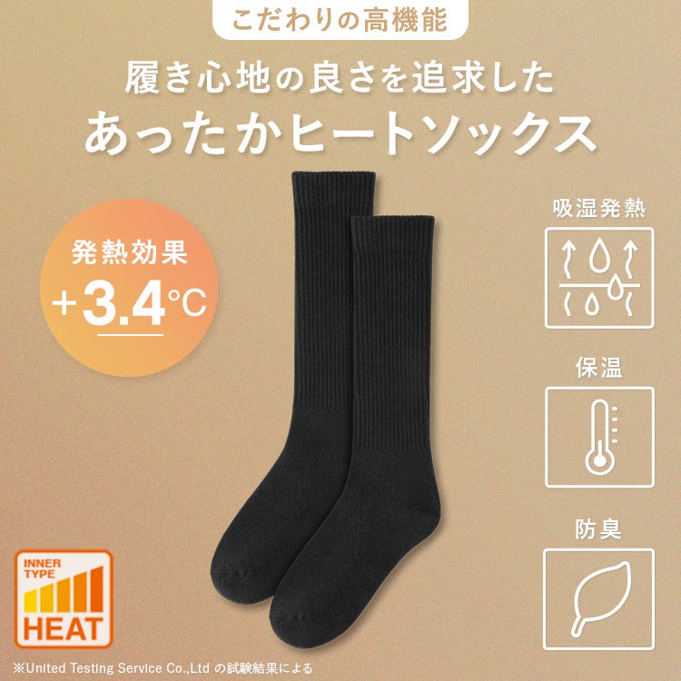 吸湿発熱素材を採用。肌から発生するわずかな湿気を吸収して熱に変換し、+3.4℃(*2) の吸湿発熱効果を発揮。冷えやすい足先を中心に、足元全体をじんわりとあたためます。