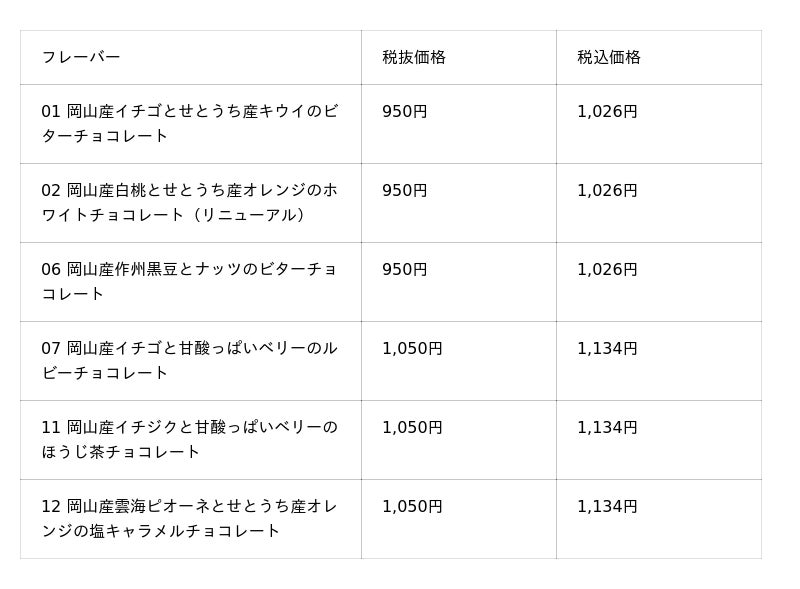 岡山県蒜山(ひるぜん)地域で丁寧につくられた「蒜山ショコラ」は、クリーミーなチョコレートの上に、せとうち産のドライフルーツや岡山産の食材を散りばめた贅沢なチョコレートです。2.販売開始日