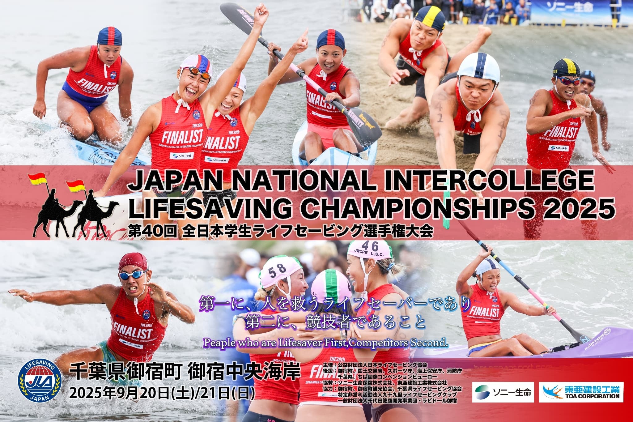 公益財団法人日本ライフセービング協会(=JLA、東京都港区、理事長/入谷拓哉)は、2025年9月20日(土)から21日(日)の2日間、御宿海岸(千葉県夷隅郡御宿町)にて「第40回全日本学生ライフセービング選手権大会」を開催しました。