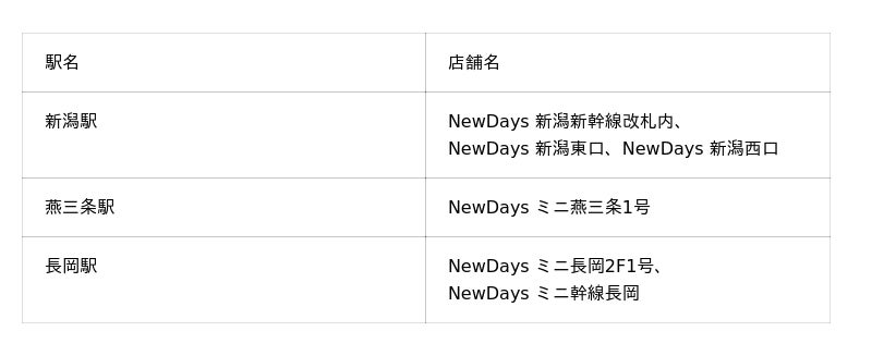 ※新潟駅・燕三条駅・長岡駅から乗車し、東京駅で降車される方にお楽しみいただける内容となります。