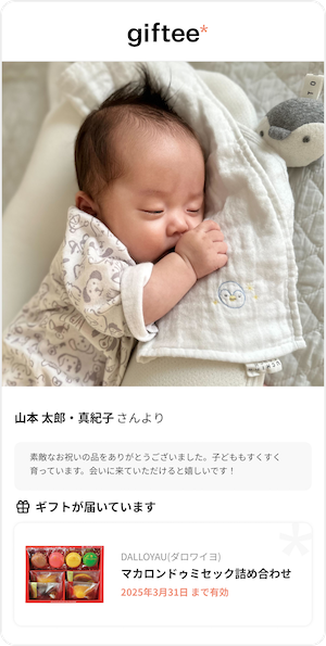 カードデザインは、「giftee(R)」が各ギフトシーンに沿ってご用意している300種類以上のカードデザインリストからお選びいただけるほか、思い出の写真やご自身で描かれたイラストなど、ご自身で用意した画像を設定いただくことも可能です。お相手やギフトシーンに合わせたカードを設定することで、受け取ったお相手に喜んでいただけるオリジナリティ高いギフトカードを作成することができます。
