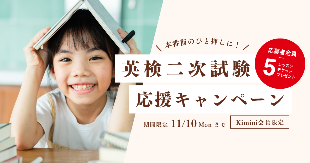 英検(R)二次試験を控えている方は、ぜひこの機会にKimini英会話をお試しください。