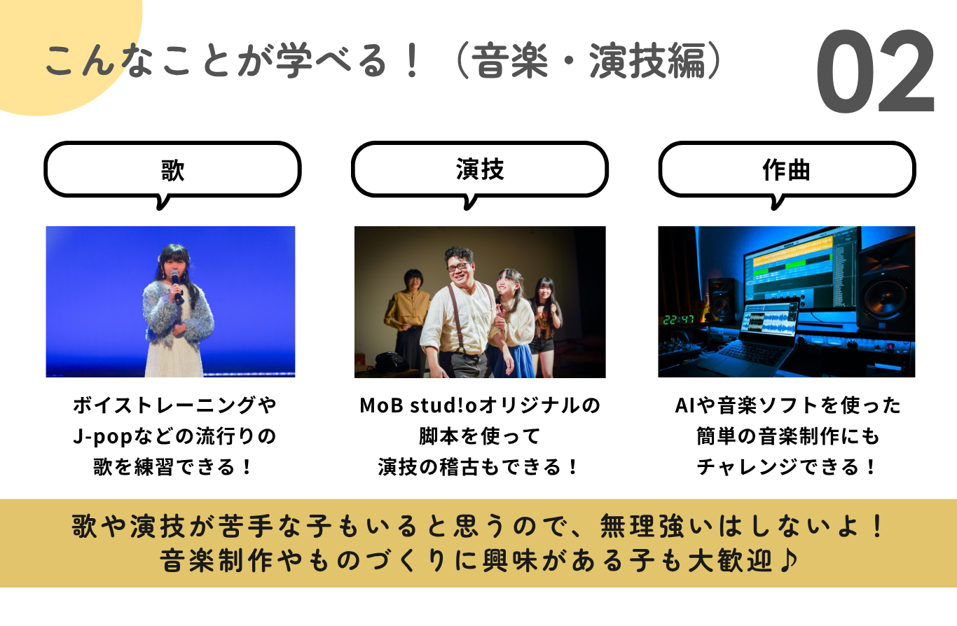 札幌白石校は、札幌の演劇&ダンススクールMoB stud!o(モブスタジオ)が運営するからこそできる【ダンス、音楽、アートなどの舞台芸術に特化したフリースクール】です。