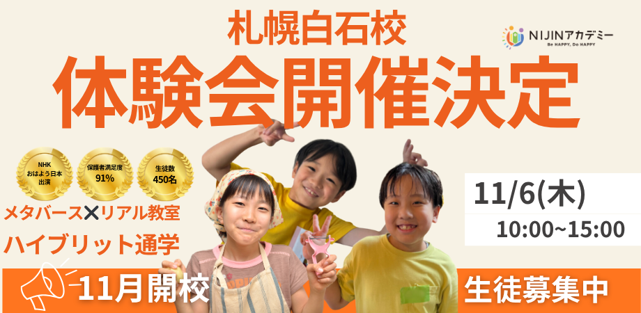 今回はリアル教室【NIJINアカデミー札幌白石校】にて、普段の活動を体験できます!