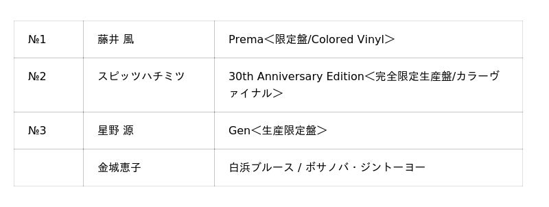 1周年記念!タワーレコード マーケットプレイス オリジナルランキング